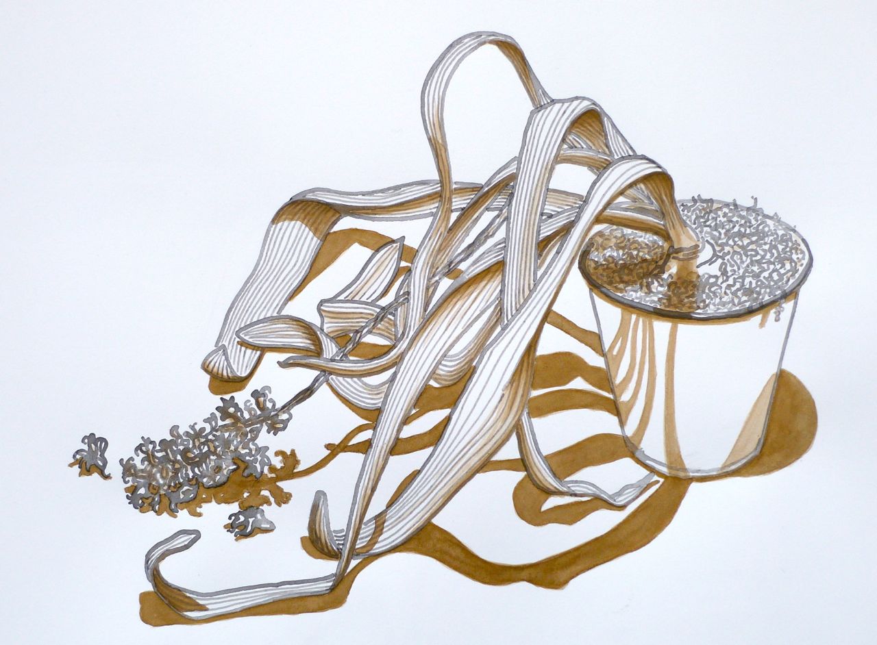I like this drawing very Much I think drawing from life is so important and I think you captured several strong elements here. The liner composition, the strong shadows echoing the plant itself and the balance with the strong lines with the circular pot and flower bulb…also the textural elements in the pot echoed in the dying flower. Such strong compositional quality.